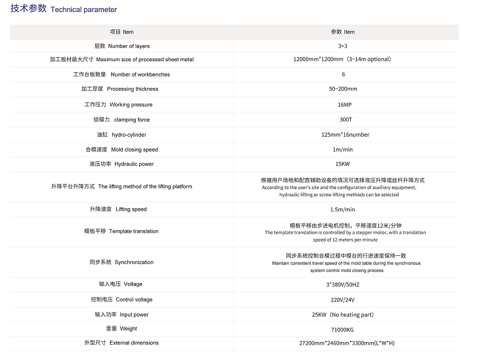 二是自動升降平臺,她的作用是從打開的層壓機(jī)工作區(qū)中將完成工作的模板取出,然后下降到適合工作的高度,再有人工或機(jī)械手將保溫板取出,然后進(jìn)行鋪裝工作,再將準(zhǔn)備好的模板送入層壓機(jī),然后在取出下一塊模板,直至將三塊模板都完成工作。